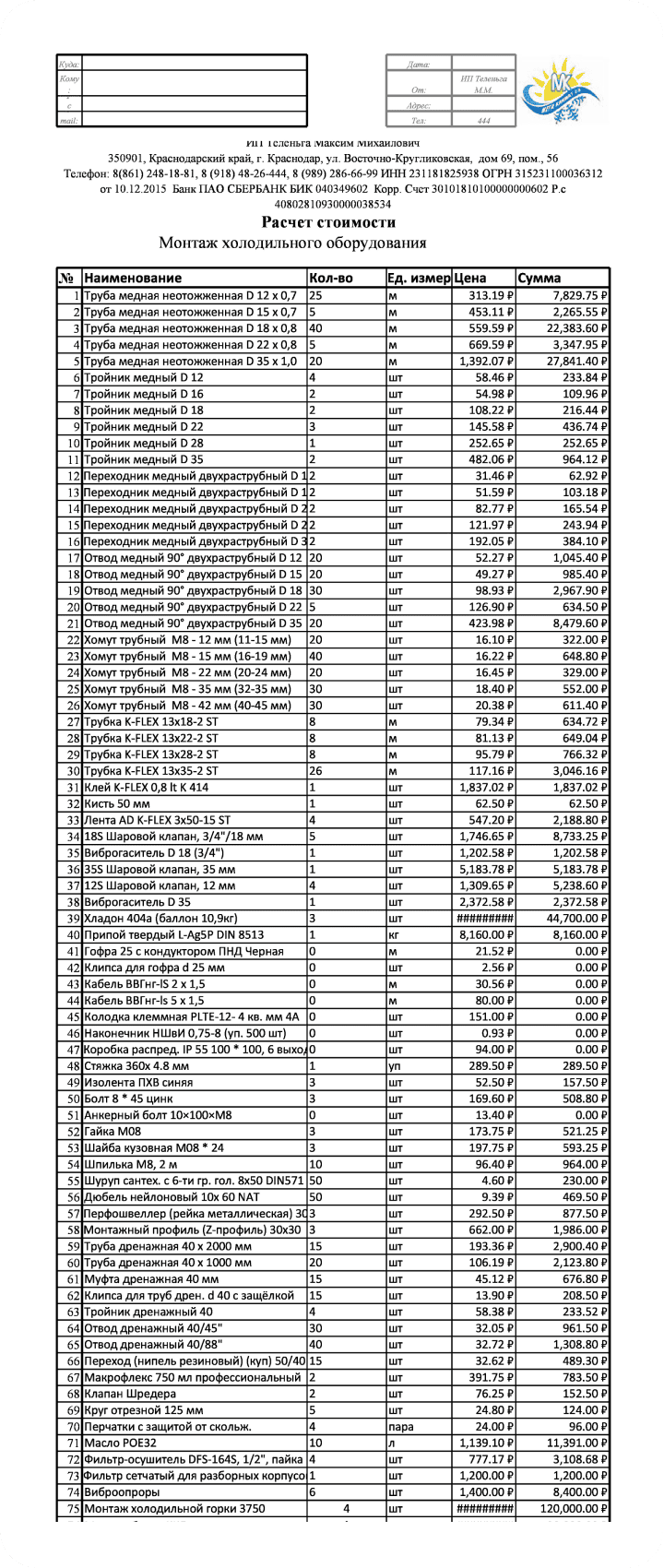 Монтаж холодильного оборудования включает несколько этапов: подготовка места установки, монтаж компонентов системы (компрессор, конденсатор, испаритель), прокладка трубопроводов, подключение к электросети, заправка хладагентом, проверка системы на герметичность и тестирование работоспособности.